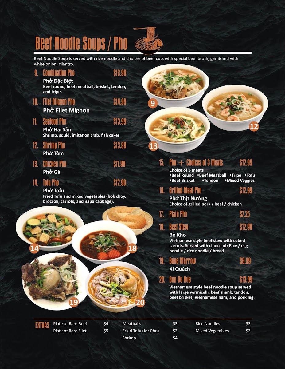 Welcome to Pho K Plus Vietnamese Cuisine, a hidden gem located at 720 Archibald Ave, Ontario, CA. This vibrant eatery specializes in authentic Vietnamese dishes, where flavor and tradition shine through every bowl. The star of the menu is, of course, the pho—available in various tantalizing options like Combination Pho, Seafood Pho, and Filet Mignon Pho, ensuring something for every palate. Whether you’re in the mood for a hearty bowl topped with rare beef or a lighter option like Tofu Pho, the rich, comforting broth is bound to impress.